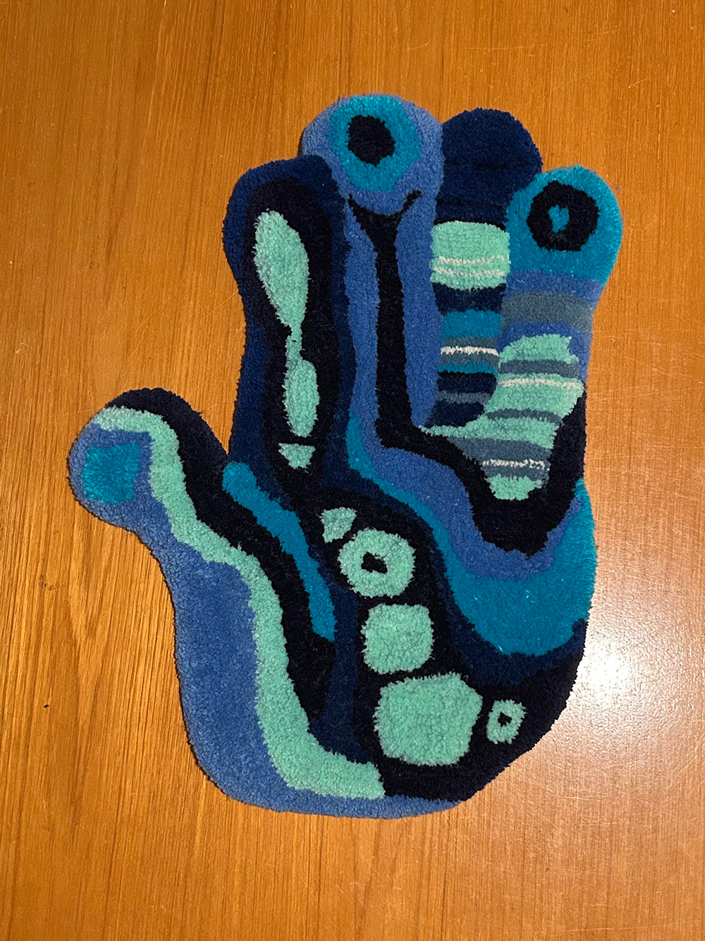 This collection, Articles of Comfort, is about the lived experience of grief and the things one does to learn to carry it. Images, concepts and visions that have helped sustain hope and build resilience in the face of grief have been transformed into tufted wool rugs. The rugs are touchable -- they seek to embody comfort in their softness and warmth and color and texture.